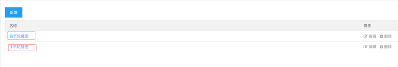 點(diǎn)擊右側(cè)輪換圖管理,點(diǎn)擊首頁(yè)輪換圖,可對(duì)電腦版banner圖進(jìn)行添加修改,點(diǎn)擊手機(jī)輪換圖,可對(duì)手機(jī)版banner圖進(jìn)行添加修改。點(diǎn)擊新增可增加輪換圖分類,比如新增“產(chǎn)品輪換圖”類別等(輪換圖就是位于導(dǎo)航下面的banner圖或者其他分類輪換圖)(如下圖)
